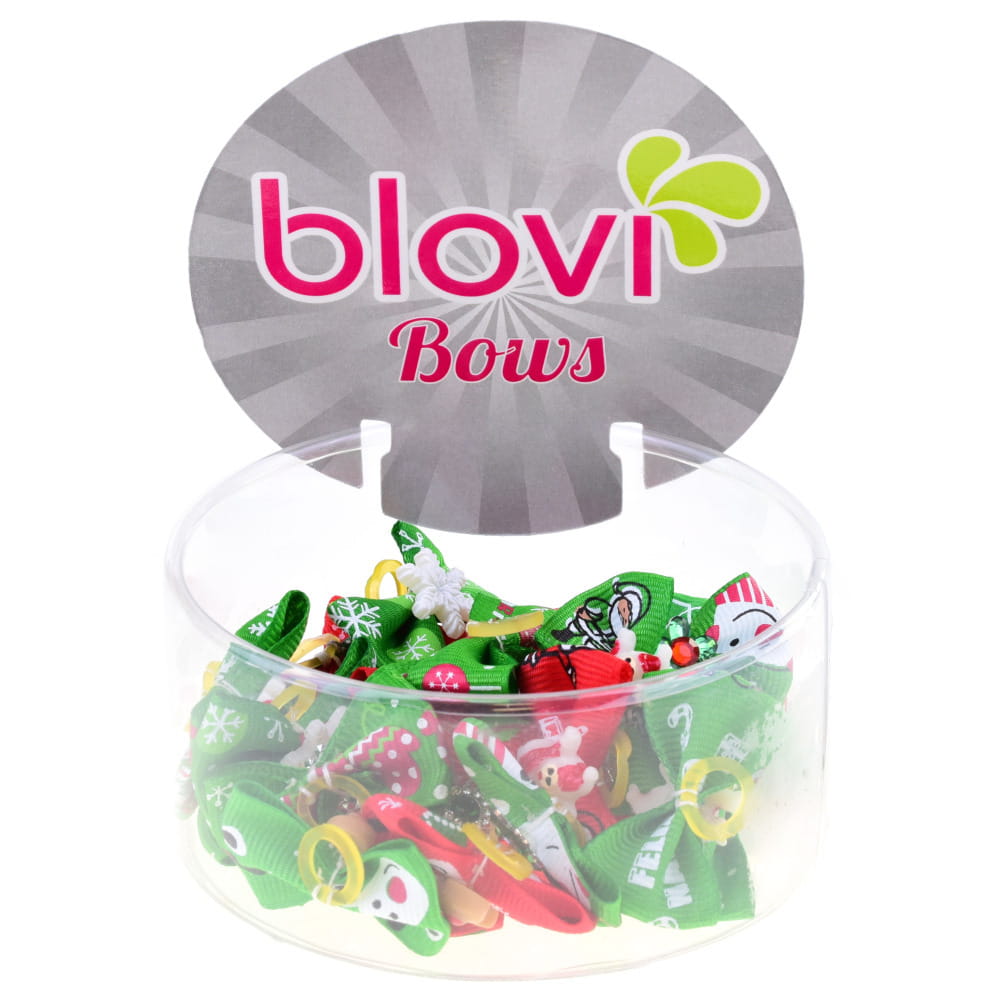 Urocza, świąteczna kokardka na silikonowej gumce, wykonana z tasiemki rypsowej, na której znajduje się wzór w śnieżynki, choinki, św. Mikołaja itp. Udekorowana, na środku. Idealnie sprawdzi się jako ozdoba kitek u ras długowłosych. Dostępna w 2 kolorach: czerwonym i zielonym. KOLOR WYSYŁAMY LOSOWO !!! Przygotuj swojego czworonożnego przyjaciela na świąteczny czas. Wymiary 4x2,5cm.