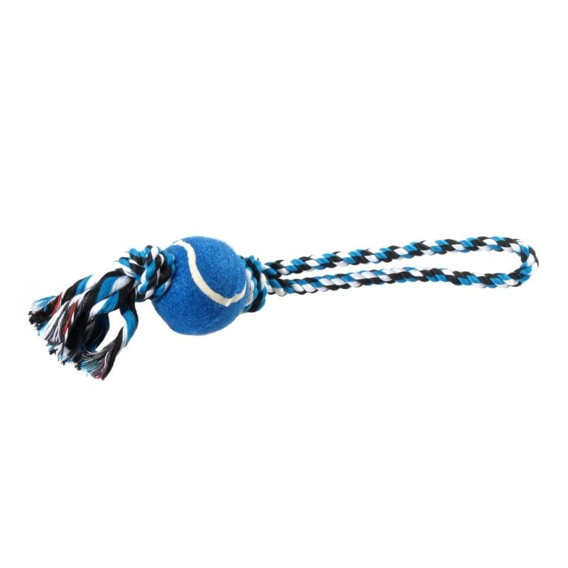 Yarro Zabawka ze sznura bawełnianego z piłką tenisową i pętlą.